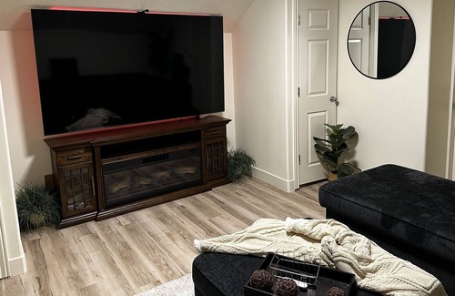 Al instalarte en este alojamiento de 1 dormitorio y 1 baño, encontrarás chimenea y aire acondicionado. Disfruta del wifi, de la smart TV y de los videojuegos. El cuarto de baño incluye un secador de pelo, toallas y papel higiénico. La cocina está equipada con horno, placa de cocina y frigorífico, además de máquina de hielo, microondas y utensilios de cocina. Y no tendrás que llevarte ropa de más, porque podrás aprovechar la lavadora y la secadora. Otras comodidades incluyen ropa de cama, una tabla de planchar y calefacción.