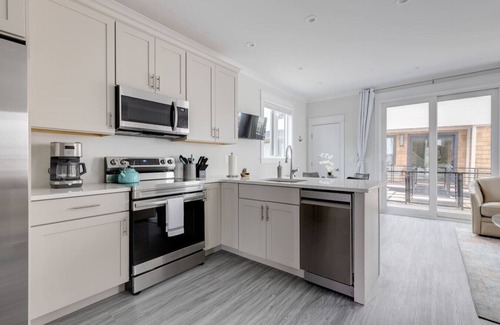 Este alojamiento de 2 dormitorios y 2 baños cuenta con una sala de estar, aire acondicionado y escritorio. El cuarto de baño incluye un secador de pelo, toallas y papel higiénico. La cocina está equipada con horno, placa de cocina y frigorífico, además de cafetera y tetera, máquina de hielo y microondas. Podrás viajar con poco equipaje, porque tendrás una lavadora y una secadora a tu disposición.