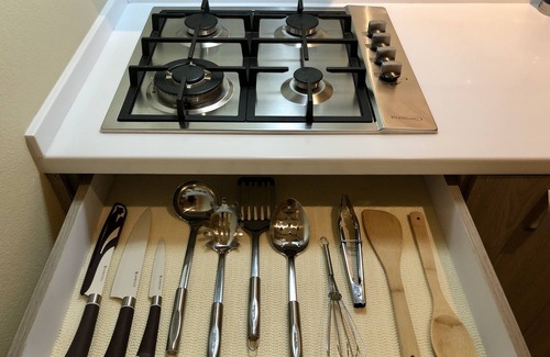 Este alojamiento de 1 dormitorio y 1 baño cuenta con una sala de estar y aire acondicionado. El cuarto de baño incluye un secador de pelo, toallas y papel higiénico. La cocina está equipada con horno, placa de cocina y frigorífico, además de cafetera y tetera, hervidor eléctrico y máquina de hielo. Y como hay una lavandería en los alrededores, no necesitarás llevarte mucho equipaje.