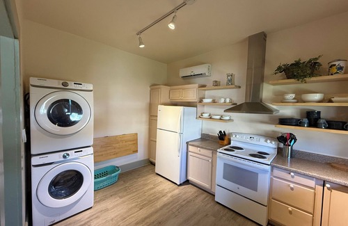 -Two bedrooms: one with a queen bed, the other with a full and twin bed