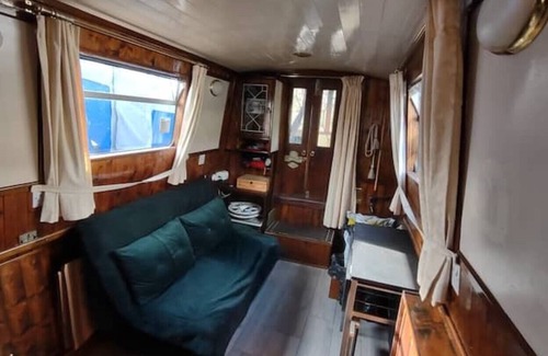 Reconnect with nature at this cozy cottage vibe narrowboat (static). The boat is 57 ft. 2 double bedrooms (1 that changes from a dinette to a bed) & a sofa bed in the living room.
