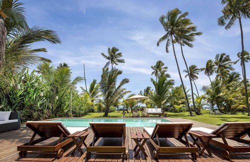 Fantástica casa de playa con 50 metros de playa, en la playa de Bombaça, con 2000 m² de jardín tropical. La hermosa piscina entre los cocoteros es una invitación a disfrutar el momento, con su área gourmet lateral ideal para largos almuerzos familiares.