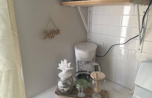 * Fully equipped kitchen with stocked coffee bar.
