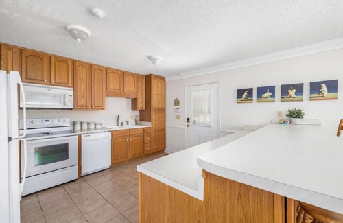 Fully equipped kitchen for preparing meals to enjoy indoors or in the outdoor dining spaces.