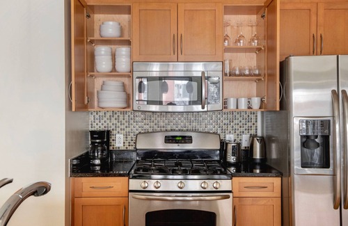 Al instalarte en este alojamiento de 1 dormitorio y 1 baño, encontrarás una sala de estar y aire acondicionado. El cuarto de baño incluye un secador de pelo y toallas. La cocina está equipada con horno, placa de cocina y frigorífico, además de cafetera y tetera, microondas y utensilios de cocina. Y no tendrás que llevarte ropa de más, porque podrás aprovechar la lavadora y la secadora.
