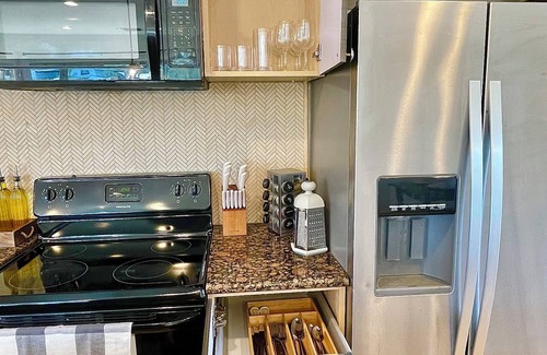 Este alojamiento de 3 dormitorios y 3 baños cuenta con una zona para barbacoas, chimenea y aire acondicionado. Conéctate al wifi, o relájate frente a un Smart TV. El cuarto de baño incluye un secador de pelo, toallas y papel higiénico. La cocina está equipada con horno, placa de cocina y frigorífico, además de cafetera y tetera, hervidor eléctrico y máquina de hielo. Y como podrás aprovechar la lavadora y la secadora, no te hará falta llevar mucho equipaje. Otras comodidades incluyen ropa de cama, una tabla de planchar, calefacción y una mesa de comedor.