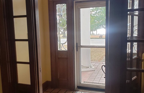 This historic lakeshore home is situated in a lovely tree-lined residential area. Positioned at the park entrance overlooking the lake. This lovely home features 4 bedrooms, 4 bathrooms which includes 1 king, 2 queen, 1 bunk bed with an additional queen bed available. Our guests rave about the comfortable beds Chefs! Chefs kitchen, dining table seats up to 10 with additional bar seating plus a table in sunroom that seats 4. Enjoy the grand central staircase, interior french doors, beautiful woodwork, not to forget exceptional views from the large windows and balcony. Whether its walking, biking, swimming, boating, shopping, restaurants or BVU its all here in this charming location! We hope you'll enjoy your stay at our fabulous estate.