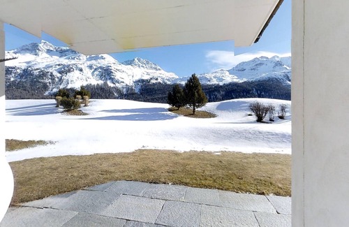 Bonito y luminoso apartamento de 3 habitaciones en la planta baja. | Apartamento en Silvaplana
