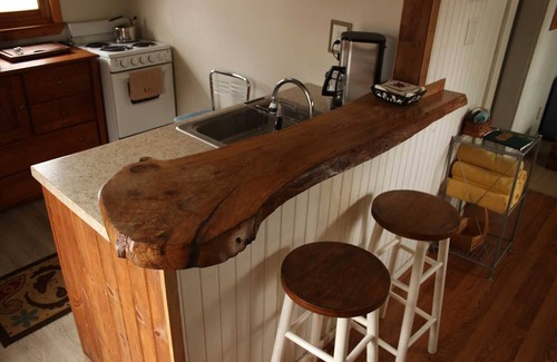 Una de las cabañas originales construidas en Burr Oak Lake, Fisherman's Cottage tiene capacidad para hasta 6 personas cómodamente en camas. El nivel superior cuenta con un nuevo baño con ducha / bañera, cocina completa, mesa de comedor, hermosa barra de roble con borde en vivo y área de descanso. El dormitorio de nivel superior tiene un futón de tamaño completo muy cómodo y litera doble. Lo suficientemente grande como para que una pareja duerma bien, o es un excelente alojamiento para tres niños.