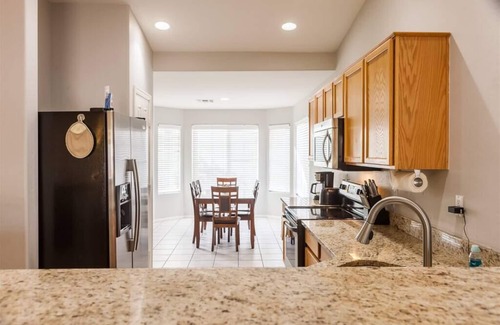 Este listado es para toda la casa, incluido el patio trasero con piscina y área de patio. La casa es 1600 pies cuadrados con techos abovedados y muebles nuevos. Se proporcionan todos los elementos esenciales, como sábanas, mantas, toallas, artículos de tocador para baño y ducha y artículos de lavandería para todo el grupo. Hay estacionamiento en la calle disponible para hasta 4 autos (2 garajes).