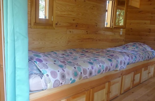 Entre Vignes et Oliviers le ofrece un trailer de alquiler para 4 personas. Construido en madera de douglas de 20 m², se encuentra a la sombra de los árboles (pinos y robles). Disfrute de la paz y la tranquilidad por una noche, un fin de semana o una semana con familiares o amigos.