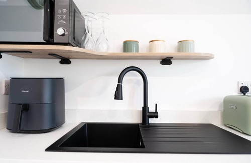 La cocina está equipada con frigorífico, además de cafetera y tetera, microondas y utensilios de cocina. Otras comodidades de este alojamiento de 1 dormitorio y 1 baño incluyen ropa de cama y calefacción.
