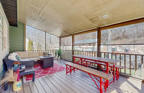 En Ripple Run, puedes disfrutar de la mejor experiencia de Smoky Mountain alojándote en esta hermosa casa moderna, ubicada con fácil acceso a las mejores atracciones del área. Esta casa que admite perros puede alojar cómodamente hasta seis huéspedes, por lo que es un gran refugio para familias, parejas o un grupo de amigos que buscan la escapada perfecta. Reúnase en el porche cubierto después de un largo día de exploración y relájese junto a la hoguera con el sonido de un pequeño arroyo cercano. Este alquiler también incluye una mesa de ping-pong para que pueda desafiar a sus invitados a algunos partidos amistosos y disfrutar de algunas tardes llenas de diversión.