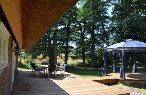 En la planta baja, el pasillo con suelo de baldosas histórico conduce a la cocina comedor con una gran mesa de comedor para 12 personas, que desemboca en el salón. Junto a él se encuentra una amplia terraza. Tres zonas para dormir y tres baños ofrecen espacio para hasta seis personas. En la planta superior hay tres dormitorios más y dos bonitos baños, uno de ellos con bañera y ducha, en las buhardillas del techo de paja. También hay un amplio pasillo como sala de juegos para niños. Los grandes ventanales orientados al sur ofrecen vistas al dique. La antigua era da una idea de cómo vivían y trabajaban los agricultores hacia 1792.