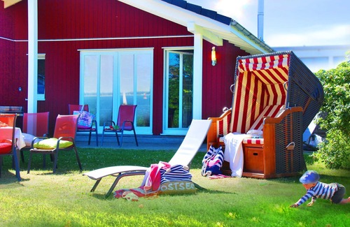 Exclusiva casa de vacaciones accesibles en estilo escandinavo directamente en el mar Báltico con vistas panorámicas, acceso a playa privada y características de confort