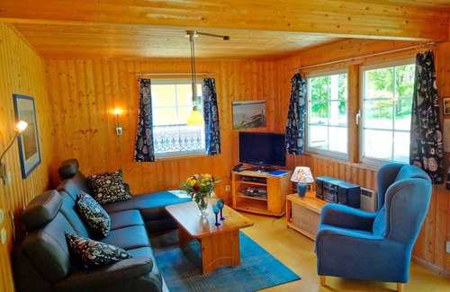 Villa Blau es una casa de madera de dos pisos para no fumadores para máx. 8 adultos y 2 niños pequeños con su espaciosa sala de estar y comedor, muebles de madera maciza de estilo escandinavo de alta calidad, amorosamente amueblados y una terraza soleada y amueblada que lo invita a vacacionar con toda la familia o con amigos. Un bote de canoa para tres personas pertenece a la casa. De Villa Blau está al borde del bosque, la terraza está al lado del lago.