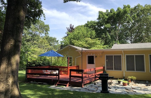 ¡Sé el primero en alquilar esta casa de verano, remodelada para tu disfrute! Cuarto de baño con azulejos nuevos, pisos de madera noble renovados, pintura fresca, cocina renovada con electrodomésticos de acero inoxidable y espacios en el patio trasero para asar a la parrilla y relajarse bajo las luces de cadenas, además de un patio de piedra de nivel inferior. Proyecto de renovación dirigido por un diseñador de interiores de hospitalidad y un dúo de contratistas familiares, decorados con un carácter antiguo e influencias modernas. Ropa blanca limpia y toallas. A poca distancia del barrio compartido Peconic Bay acceso a la playa.