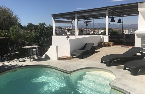 * La casa está ubicada en la parte superior del pueblo de Alhaurín El Grande, en el borde de la montaña. De estilo típico andaluz, la casa tiene varias terrazas privadas (incluida una terraza cubierta con una cocina de verano), una piscina, 4 dormitorios con 4 baños (3 duchas, 1 baño y 4 WC), 2 cocinas, un salón-salón. El acceso a todas las tiendas, bares y restaurantes en Alhaurin es a pie. Ubicada en el borde de la Sierra y en lo alto, la casa es particularmente fresca durante el calor del verano. El punto de partida para caminatas a MIJAS Pueblo está al pie de la casa. La casa es muy apreciada por nuestros clientes que no desean alquilar un automóvil.