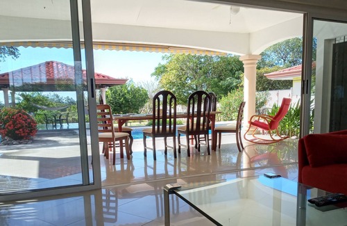 ¡Una escapada exótica te espera en la cálida y soleada Costa Rica! La encantadora casa está a solo 20 minutos en coche del aeropuerto ya 10 minutos de la ciudad de Liberia. Puedes hacer algunas compras a lo largo de la ruta en Wal-Mart. Esta casa de 4 dormitorios es espaciosa y se encuentra en una gran propiedad. Cuenta con dos camas queen size y 2 juegos de literas y puede acomodar fácilmente a 8 personas. Todas las habitaciones tienen aire acondicionado. La piscina privada al aire libre hará que sus vacaciones sean frescas y emocionantes. ¡Un cenador abierto y una barbacoa debajo de palmeras, y un cielo estrellado cuando cae la noche!