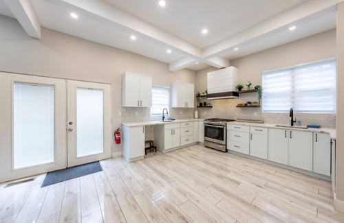 Spacious 6BR home just 30 mins from NYC! Enjoy a private backyard with a large pool, fire pit, hammock, BBQ grill, and shaded deck. Two master suites with ensuite baths, plus 4 more bedrooms—perfect for families & groups. Features include a full kitchen, Smart TVs, pool table, kids’ desk, and workstation. Walk to shops & dining, near parks, malls, and trains. Fun, comfort & location all in one!