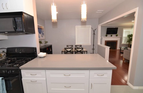 La casa tiene una cocina y baño completamente nuevos. La cocina está totalmente equipada con todos los elementos esenciales para cocinar y disfrutar de una buena comida en casa. El hogar está abastecido con ropa de cama, toallas y champú. Hay un gran patio delantero cerrado para mayor privacidad. También hay un patio lateral y un amplio patio trasero para que nuestros huéspedes disfruten de un poco de tiempo al aire libre.