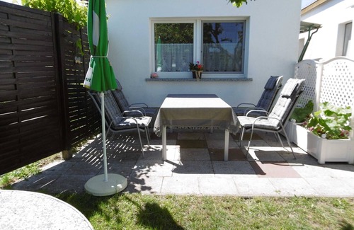 La casa consta de 1 sala de estar con vistas al jardín, 2 dormitorios y 2 camas. Una de las habitaciones es una habitación infantil con 2 camas individuales (190 cm). Cocina con lavavajillas, nevera, microondas, cocina eléctrica y horno. Cuarto de baño con inodoro y ducha; Veranda con zona de estar. El FH es familiar. Para FH incluir sillas, muebles de jardín, barbacoa, terraza con mesa y sillas y paraguas. En días fríos, se puede utilizar la calefacción.