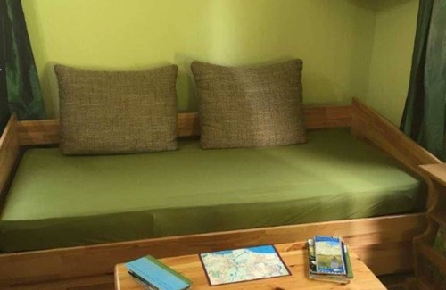 casa totalmente equipada con 55 metros cuadrados a 380 metros cuadrados parcela independiente con estacionamiento. salón abierto con cocina generosa (nevera-congelador, vitrocerámica con horno, licuadora, utensilios para hornear, microondas, lavavajillas, tetera, cafetera, tostadora, etc.), esquina sofá con un televisor de pantalla plana y un rincón acogedor, reproductor de DVD, radio-CD, cuero -Essecke, cocina con pared de ladrillo interesante (madera está lista). . 1 Cuarto de baño en la casa: con ducha y cortina, entrada baja, muchas oportunidades para la colocación de objetos, toallas, lavabo, inodoro, secador de pelo 2. Malo: accesible desde el exterior, aseo con lavabo, tendedero, soportes y lavadora. Dormitorio con altillo: por debajo de una cama de 1,40x2,00 m para 2 personas, una para tomar el sol 0,9x2,00 m, un armario grande, un pequeño armario, sillas, estantes con muchos libros, herramientas para pintar, revistas infantiles, juegos de mesa para interiores como en exteriores, trona y cuna a petición. Altillo sobre ahorro de espacio escalera de acceso: 1 colchón de 1,40x2,00 m para 2 con tablero de madera de fusibles deslizante para escaleras. Suelos todo revestimientos de PVC, techos altos, bien aislado casa de madera con ventanas de triple acristalamiento, para no fumadores terrenos de la Casa: bicicleta segura cobertizo con los panaderos de bicicletas, parrilla de carbón, cubiertas área de descanso con sillas de jardín confortables, espacio para juegos de bádminton, disfrutar de la naturaleza, leer y relajarse, la flor y la hierba para alimentos.