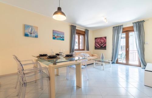 Ubicada en Cagliari, cerca de la playa del Poetto, esta acogedora casa de vacaciones de 80 m² puede alojar hasta 6 personas con 2 dormitorios y un salón. El dormitorio principal tiene una cama queen size, el segundo dormitorio ofrece 2 camas individuales y en el salón encontraréis un sofá cama doble. La cocina privada está completamente equipada con placa de inducción, microondas, horno, cafetera, frigorífico y congelador, proporcionando todo lo necesario para cocinar. Entre las comodidades se incluyen aire acondicionado, Wi-Fi apto para videollamadas, smart TV de 75" en el salón, smart TV de 50" en el dormitorio principal, lavadora, ascensor, zona de trabajo dedicada y cuna disponible.