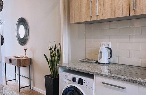 La cocina está equipada con horno, frigorífico y lavavajillas, además de microondas. Disfruta del wifi y de la televisión por satélite o cable. El cuarto de baño incluye un secador de pelo, toallas y papel higiénico. Y como podrás aprovechar la lavadora y la secadora, no te hará falta llevar mucho equipaje. Otras comodidades de este alojamiento de 1 dormitorio y 1 baño incluyen ropa de cama y una tabla de planchar.