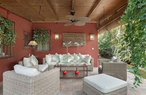 Situada en El Puerto de Santa María, la casita de campo Villa Rocío tiene todo lo necesario para unas vacaciones confortables. La propiedad de 160 m² consta de una sala de estar, 5 dormitorios y 4 baños, por lo que puede alojar a 10 personas. Los servicios adicionales incluyen Wi-Fi, televisión, aire acondicionado, ventilador y lavadora. Este alquiler de vacaciones ofrece una zona exterior privada, que incluye un jardín, una terraza descubierta y una terraza cubierta.