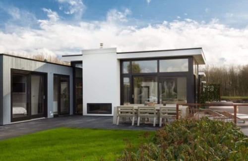 In this holiday home for 2 people, you will enjoy the space and luxury around you. Not only in the holiday home itself, such as in the spacious living room with open kitchen, but also in the garden with large terrace. The kitchen is fully equipped, including an induction hob, fridge-freezer, combination microwave oven, kettle, coffee maker and dishwasher. Through the hallway, you reach the spacious bedroom with large windows overlooking the garden. The ensuite bathroom has a rain shower, waterbasin, toilet and bathtub. Outside you have a lovely lounge set and a large table for dining. You can park 1 car at the holiday home and use the free Wi-Fi.
