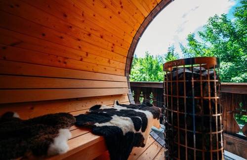 A special highlight of the Gams Suite is the private outdoor area. Here, guests can expect a hot pot and a traditional barrel sauna – an exclusive wellness oasis under the open sky. Surrounded by the silence of nature, with a view of the majestic mountain backdrop, a unique feeling of tranquillity and relaxation is created. Whether after a hike through the Karwendel or an active winter day in Seefeld – Tyrol's high plateau: In the Gams Suite, nature experience, alpine luxury, and comfort merge into an unforgettable stay. It is the perfect choice for couples seeking a romantic and at the same time stylish retreat in the Tyrolean Alps.