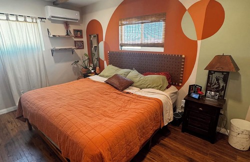 Welcome to this peaceful villa in Twentynine Palms. This awesome property features 2 cozy bedrooms, a fully equipped kitchen, and a relaxing living area. With amenities like heating, WiFi, and AC, guests can unwind and enjoy their stay. The beautiful surroundings offer a serene atmosphere, perfect for a getaway or an artist retreat. We think our place will help you experience everything Twentynine Palms has to offer.