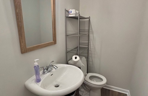 Este alojamiento de 3 dormitorios y 1.5 baños cuenta con una sala de estar, aire acondicionado y escritorio. Disfruta del wifi gratis y de la televisión. El cuarto de baño incluye toallas, papel higiénico y jabón. La cocina está equipada con horno, placa de cocina y frigorífico, además de cafetera y tetera, microondas y utensilios de cocina. Otras comodidades incluyen ropa de cama, calefacción y una mesa de comedor.