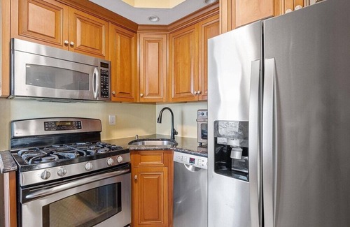 La cocina está equipada con horno, placa de cocina y frigorífico, además de cafetera y tetera, microondas y utensilios de cocina. Conéctate al wifi, o relájate frente a un Smart TV. El cuarto de baño incluye un secador de pelo, toallas y papel higiénico. Podrás viajar con poco equipaje, porque tendrás una lavadora y una secadora a tu disposición. Otras comodidades de este alojamiento de 2 dormitorios y 1.5 baños incluyen ropa de cama, una tabla de planchar, aire acondicionado y calefacción.
