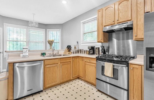 Prepara una comida casera en la cocina, equipada con horno, placa de cocina y frigorífico, además de cafetera y tetera, microondas y utensilios de cocina. Disfruta de la conexión a Internet y de la televisión por satélite o cable. Podrás viajar con poco equipaje, porque tendrás una lavadora y una secadora a tu disposición. Otras comodidades de este alojamiento de 3 dormitorios y 2.5 baños incluyen ropa de cama, aire acondicionado y calefacción.