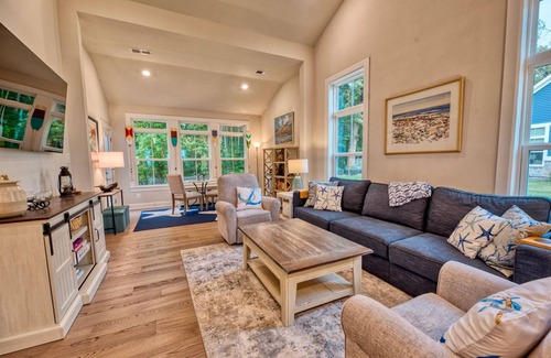 Este alojamiento de 3 dormitorios y 2.5 baños cuenta con una sala de estar, un comedor, un sofá cama y barbacoas de gas. Prepara una comida casera en la cocina, equipada con horno, placa de cocina y frigorífico, además de cafetera y tetera, máquina de hielo y microondas. Y no tendrás que llevarte ropa de más, porque podrás aprovechar la lavadora y la secadora.