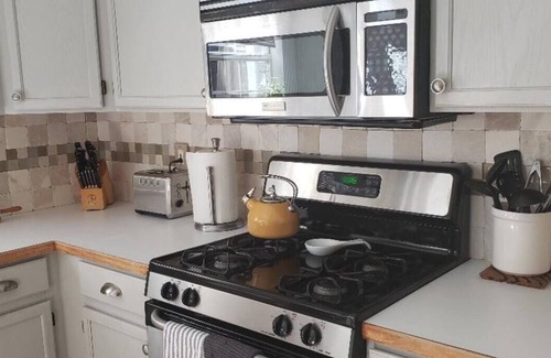 Los huéspedes disfrutarán de una visita memorable en esta casa de 3 dormitorios / 2 baños totalmente amueblada. Space es un cómodo 3 dormitorios con colchones queen pillow top. Tiene capacidad para hasta 6 personas. La espaciosa sala de estar está amueblada con sofás de cuero y un acceso de TV inteligente de 55 pulgadas a Hulu y Amazon Prime. La cocina es perfecta para cenar, ya que está equipada con estufa, microondas y refrigerador. Se proporcionan todos los utensilios de cocina, vajilla y utensilios de cocina. Hay un área de cubierta para relajarse y disfrutar de la hermosa naturaleza, observar la variedad de hermosas aves en juego. La propiedad está a solo minutos de todas las mejores atracciones, y los huéspedes seguramente disfrutarán de tener toda la casa para ellos solos. Hay un apartamento en el sótano que no está incluido. Puedo usarlo ocasionalmente mientras estoy en la ciudad, durante uno o dos días a la vez. El garaje no está incluido.