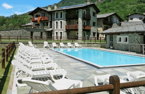 Residence "Torinetto", 1'000 m a.s.l 4 storeys. 18 apartments in the residence. In the district of Calchesio 1 km from the centre of Sampeyre, on the outskirts, 12 km from the centre of Casteldelfino, 35 km from the centre of Saluzzo, 50 m from the river. For shared use: property 5'000 m2, garden (not fenced) with lawn, meadow, lawn for sunbathing, swimming pool fenced (12 x 5 m, depth 100 - 170 cm, seasonal availability: 01.May. - 30.Sep extra). Shower/WC in the pool area, outdoor shower, boccia, terrace, garden furniture, barbecue, children's playground. In the complex: reception, restaurant, bar, lounge, WiFi, fitness room, storage room for bicycles, washing machine (for shared use, extra), heating available only from 15.10. to 15.04.. Breakfast and half board possible (extra). Parking. Supermarket 1.5 km, railway station "Costigliole di Saluzzo" 35 km. The facilities for shared use are in the main building with another 40 hotel rooms. The pool is in approx. 50 m distance to «La Borgata» and approx. 150m from «Casa del Ponte». Wi-fi only at the reception.