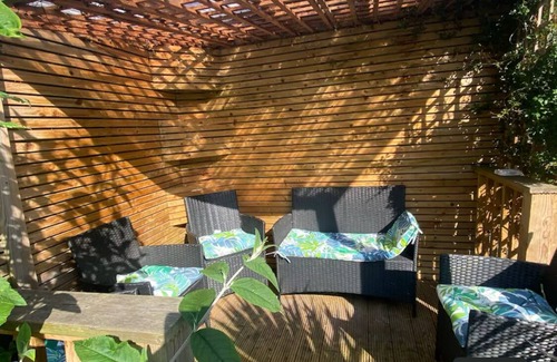Second bathroom with a WC and washer/dryer for laundry. The back garden is a sun trap with a secluded seating area where you can gather round and plan your adventures in Dublin!