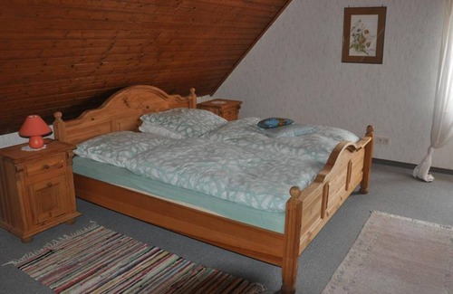 Nuestra cómoda cabaña de 125 metros cuadrados con estilo de casa de campo le ofrece en la planta baja una sala de estar con estufa de azulejos y rincón de libros y un salón de la granja con un gran balcón orientado al sur. Arriba hay 3 dormitorios, un baño con ducha, bañera y WC. En el sótano hay una sauna de vapor, que se puede utilizar por un suplemento.