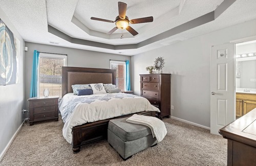 Your cozy getaway awaits in Olive Branch at this beautiful house. With 4 bedrooms, including 1 king bed and 3 queen beds, there's plenty of space for you and your guests to relax and recharge. Home has a large backyard, garage parking and a laundry area for guest. The house also features 3 bathrooms, complete with a bathtub and hair dryer for your convenience. Plus, there's an additional office space with a comfy sofa bed. You'll find everything you need here, from an iron and hair dryer to AC, heating, a washing machine, and WiFi. It's easy to see why you'll be able to unwind at our place.