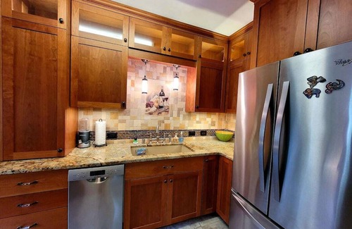 Este alojamiento de 2 dormitorios y 1 baño cuenta con un comedor, una zona para barbacoas, chimenea y aire acondicionado. El cuarto de baño incluye un secador de pelo, toallas y papel higiénico. La cocina está equipada con horno, placa de cocina y frigorífico, además de cafetera y tetera, hervidor eléctrico y máquina de hielo. Y no tendrás que llevarte ropa de más, porque podrás aprovechar la lavadora y la secadora.