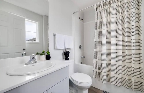 La cocina está equipada con horno, placa de cocina y frigorífico, además de cafetera y tetera, hervidor eléctrico y microondas. El cuarto de baño incluye un secador de pelo, toallas y papel higiénico. Y como podrás aprovechar la lavadora y la secadora, no te hará falta llevar mucho equipaje. Otras comodidades de este alojamiento de 3 dormitorios y 2.5 baños incluyen un comedor, ropa de cama, calefacción y una mesa de comedor.