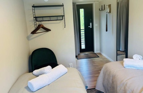 The small house is newly built with a terrace overlooking the lake with a BBQ. There are two parking lots right next to the house. Great bus communication to central Stockholm(30min). Local shops and restaurants are only walking distance.