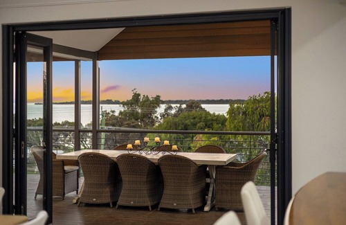 Nestled in a waterfront hillside just meters from the Dawesville boat ramp, park, walking trail, and local general store our property offers a convenient and tranquil escape for holidaymakers looking for both a sea and tree change! Enjoy the sunrise, BBQ's and afternoon drinks on the balcony or cozy up inside with the wood-burning fireplace.