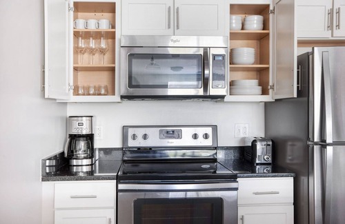 Este alojamiento de 1 dormitorio y 1 baño cuenta con una sala de estar y aire acondicionado. Conéctate al wifi, o relájate frente a televisión. También hay un reproductor estéreo. El cuarto de baño incluye un secador de pelo y toallas. La cocina está equipada con horno, frigorífico y lavavajillas, además de cafetera y tetera, microondas y utensilios de cocina. Y no tendrás que llevarte ropa de más, porque podrás aprovechar la lavadora y la secadora. Otras comodidades incluyen ropa de cama, una tabla de planchar, servicio de limpieza disponible a petición y calefacción.