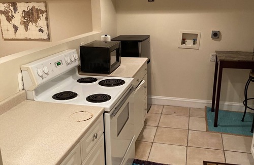 La casa en la casa principal tiene un comedor con una mesa de madera muy grande, una sala de estar para descansar con los invitados; una plancha con una tabla de planchar; perchas y etc. TENGA EN CUENTA: Esto incluye la unidad de sótano en inglés también. Cada unidad es completamente privada y segura.