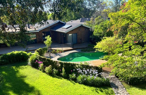 Bienvenido a este espacioso y abierto estudio de casa de huéspedes que se encuentra en un jardín verde al final de una hilera de grandes árboles. El hostal cuenta con puertas corredizas de vidrio, techo de catedral y amplias vistas al jardín. La decoración es simple, contemporánea y ordenada. El sentimiento es de amplitud y tranquilidad. Ofrecemos una piscina y estacionamiento en la calle sin restricciones. Además, hay lavadora en el lugar y seca en el edificio adyacente a nuestra cabaña.