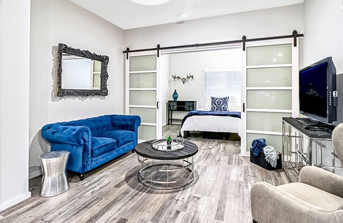 Back at your stay, relax in the spacious living area with some freshly popped popcorn as you stream your favorite TV shows and movies. The well-equipped kitchen homes all of the necessities you need to whip up delicious dishes, and when you're ready to eat, dine at the quaint dining table.